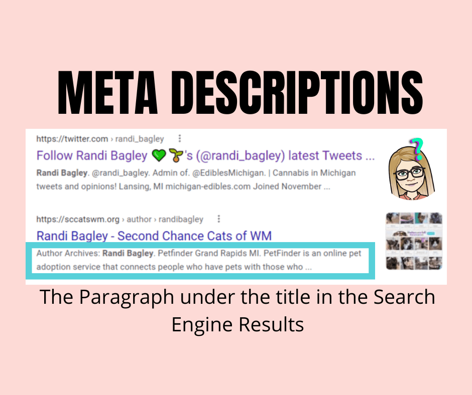 Meta descriptions are the paragraph under the title in the search results page